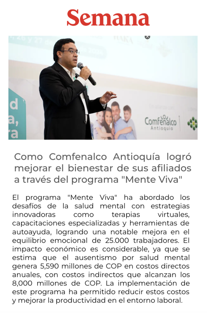 Para más de 20.000 empresas afiliadas a Comfenalco Antioquia, que cuentan con más de 500.000 trabajadores, este ausentismo puede generar un costo aproximado de 650.000 millones de pesos anuales. De acuerdo con la Organización Mundial de la Salud (OMS), hasta el 30% de este ausentismo podría estar relacionado con problemas de salud mental, lo que resalta la importancia de abordar este tema en los entornos laborales.